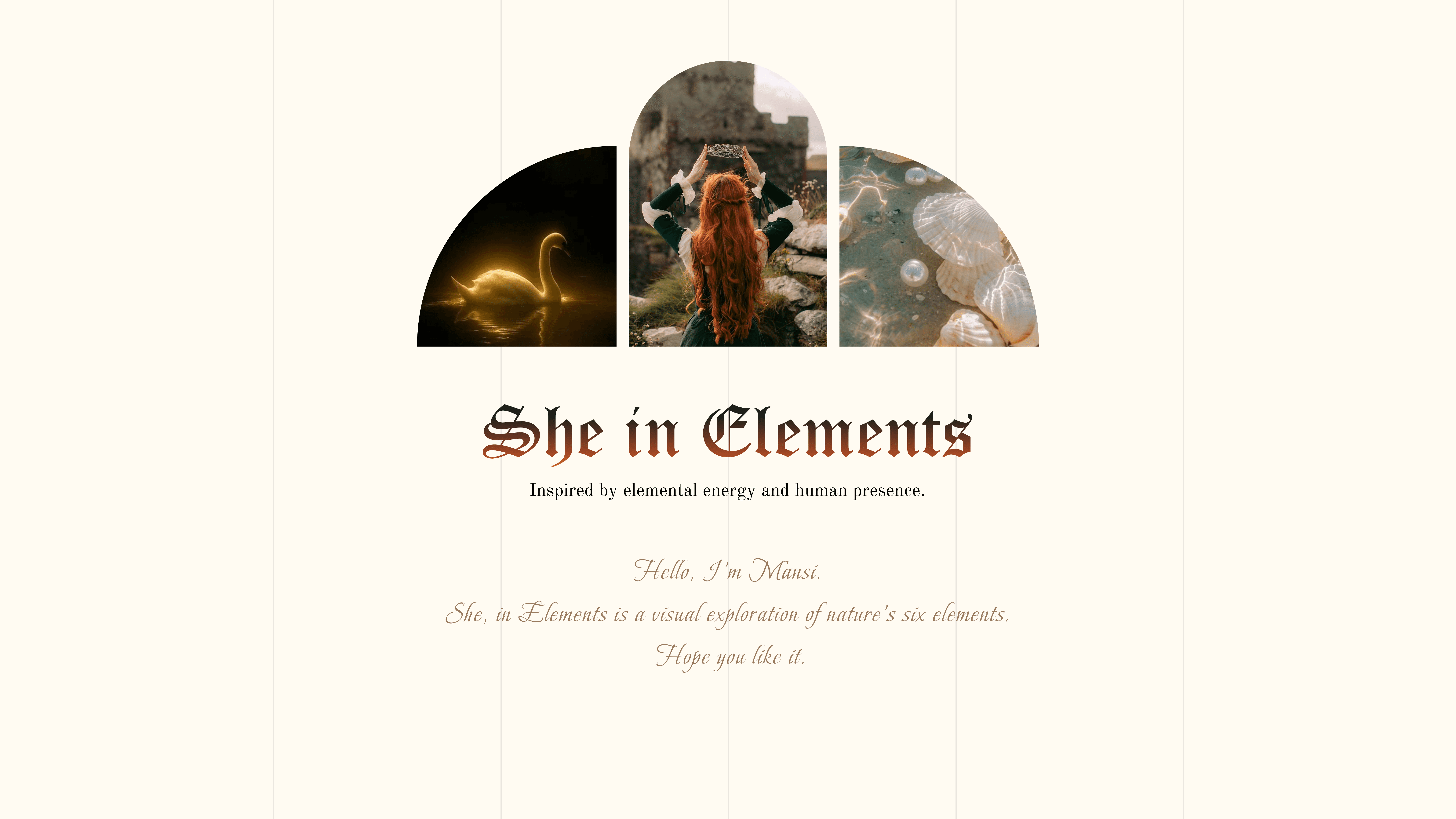 She in elements is a visual exploration of natures six elements . I tried to imagine how it would be if there is a website for each element of the nature.